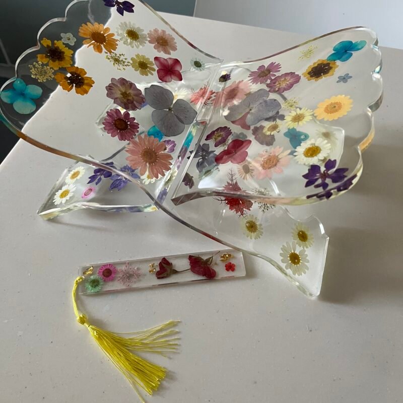 30*20 cm ölçülerinde ücretsiz kitap ayırıcıya sahip Rizen Kur’an tutucu. Tasarım, müşterinin seçimine göre çiçek ve renk ilaveleriyle değiştirilebilir.